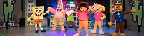 Vieni a conoscere di persona i PAW Patrol - Chase, Marshall e Skye - SpongeBob SquarePants e il suo migliore amico Patrick Star, le Teenage Mutant Ninja Turtles e Dora l’Esploratrice!